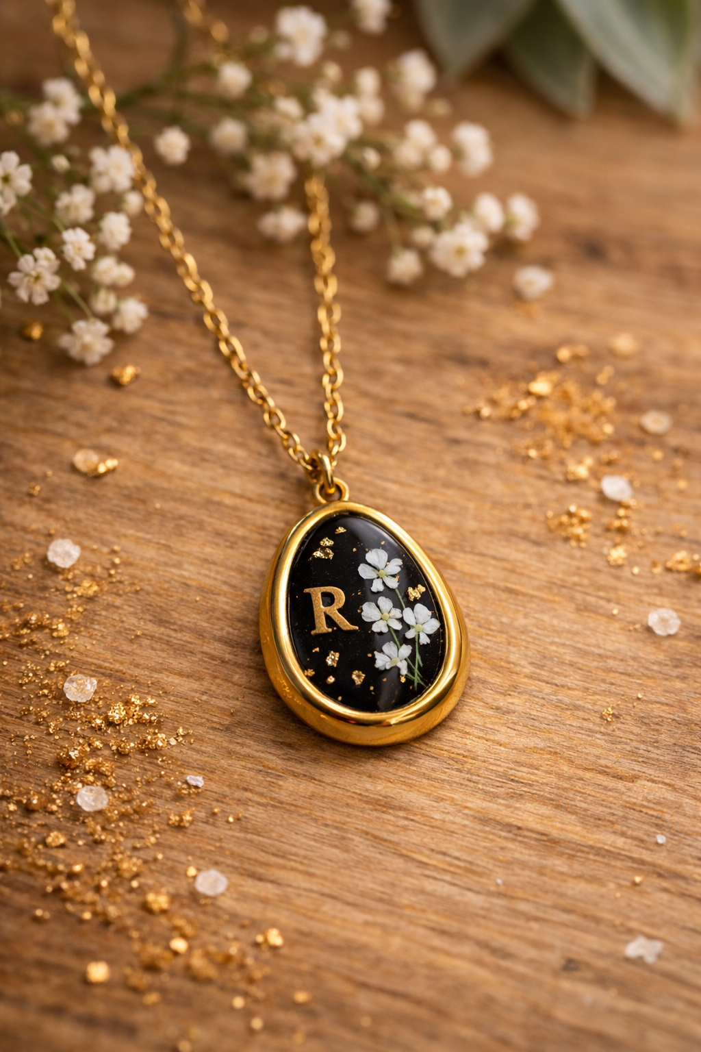 Mes bijoux en résine, incrustés de fleurs séchées et de feuilles d'or, sont entièrement fabriqués à la main en Bretagne